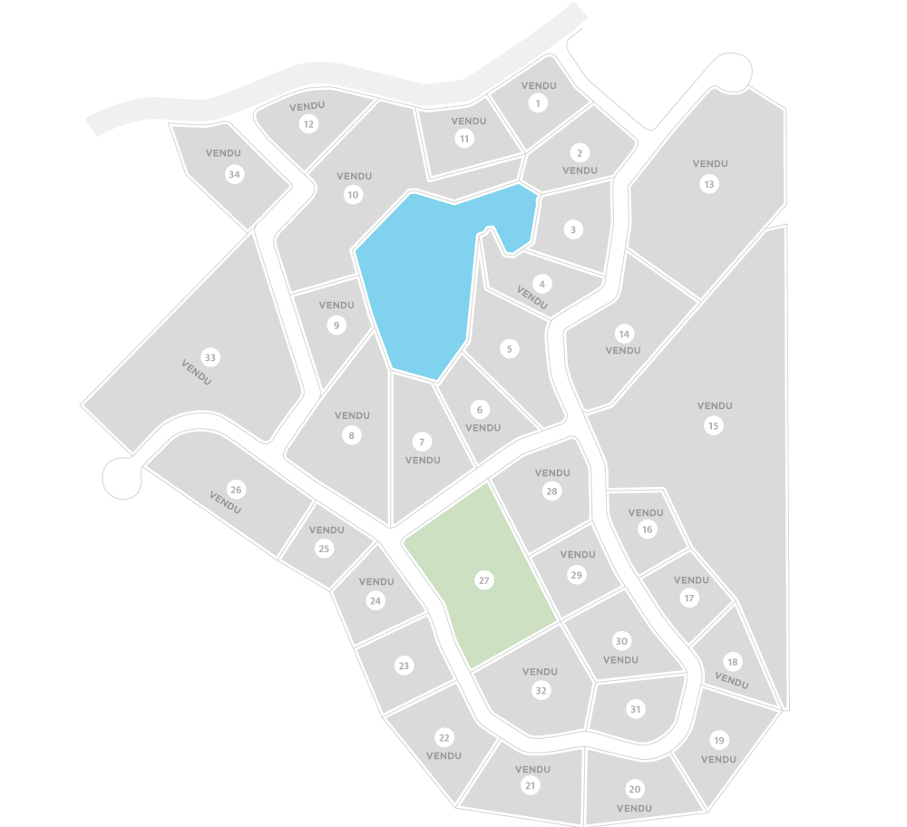 Tous les terrains ont une superficie minimale de 43 000 pieds carré. Vous avez aussi la possibilité de choisir (sans frais supplémentaire) la superficie de votre terrain sur mesure selon le plan cadastral. Vous aurez droit d’accès notarié aux 2 lacs. (Aucun moteur à essence sur l’eau)