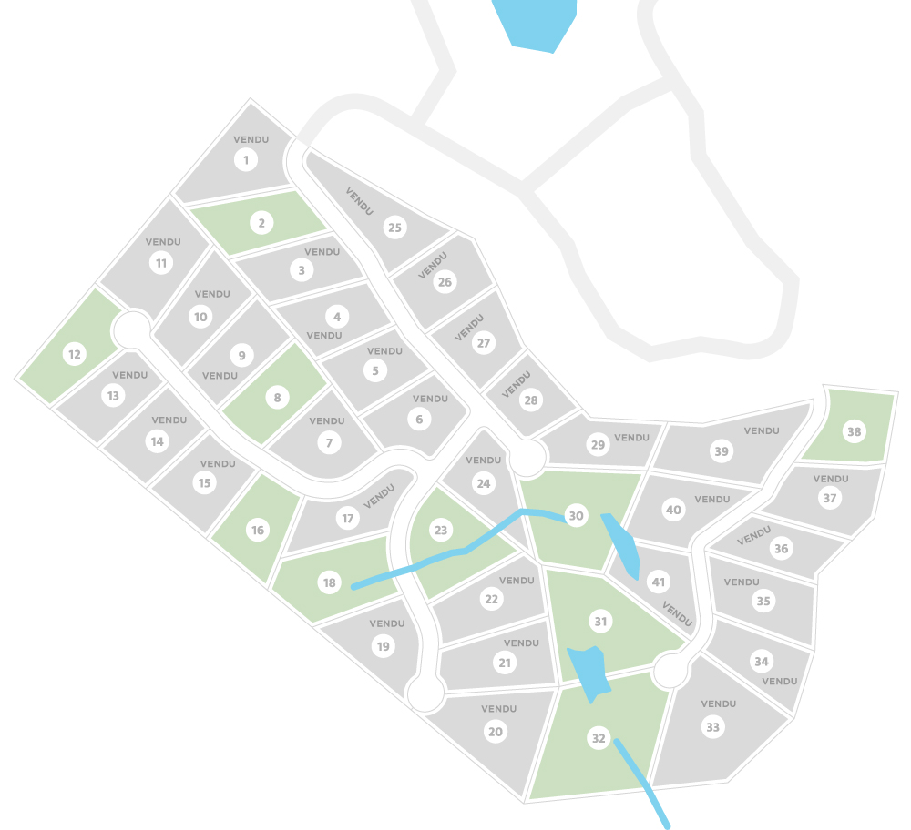 Dans cette nouvelle phase du développement, tous les terrains bénéficient d'une superficie d'environ 60 000 pieds carrés afin de préserver le plus possible la nature ainsi que votre intimité. Vous aurez droit à des terrains avec vue incroyable sur les montagnes ainsi qu'à une végétation de forêt mixte. Chaque terrain vous donne accès notarié à 2 lacs, Lac Jaune ainsi que le lac artificiel du domaine.
