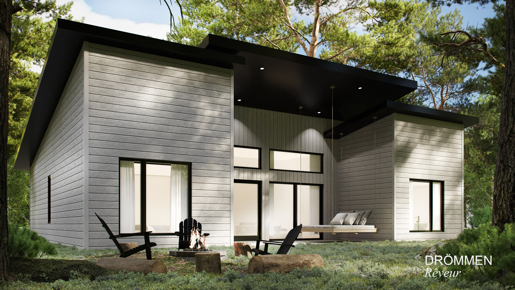Votre entrée dans ce chalet, nommé DROMMEN, vous fera rêver comme si bien son nom l’indique; votre rêve devenu réalité. Sa grande fenestration, ses lignes épurées et que dire de son lit suspendu à l’extérieur… vous serez tout simplement séduit.